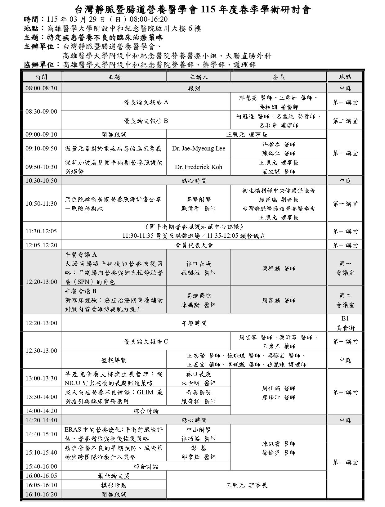 台灣靜脈暨腸道營養醫學會115年度春季學術研討會暨會員大會