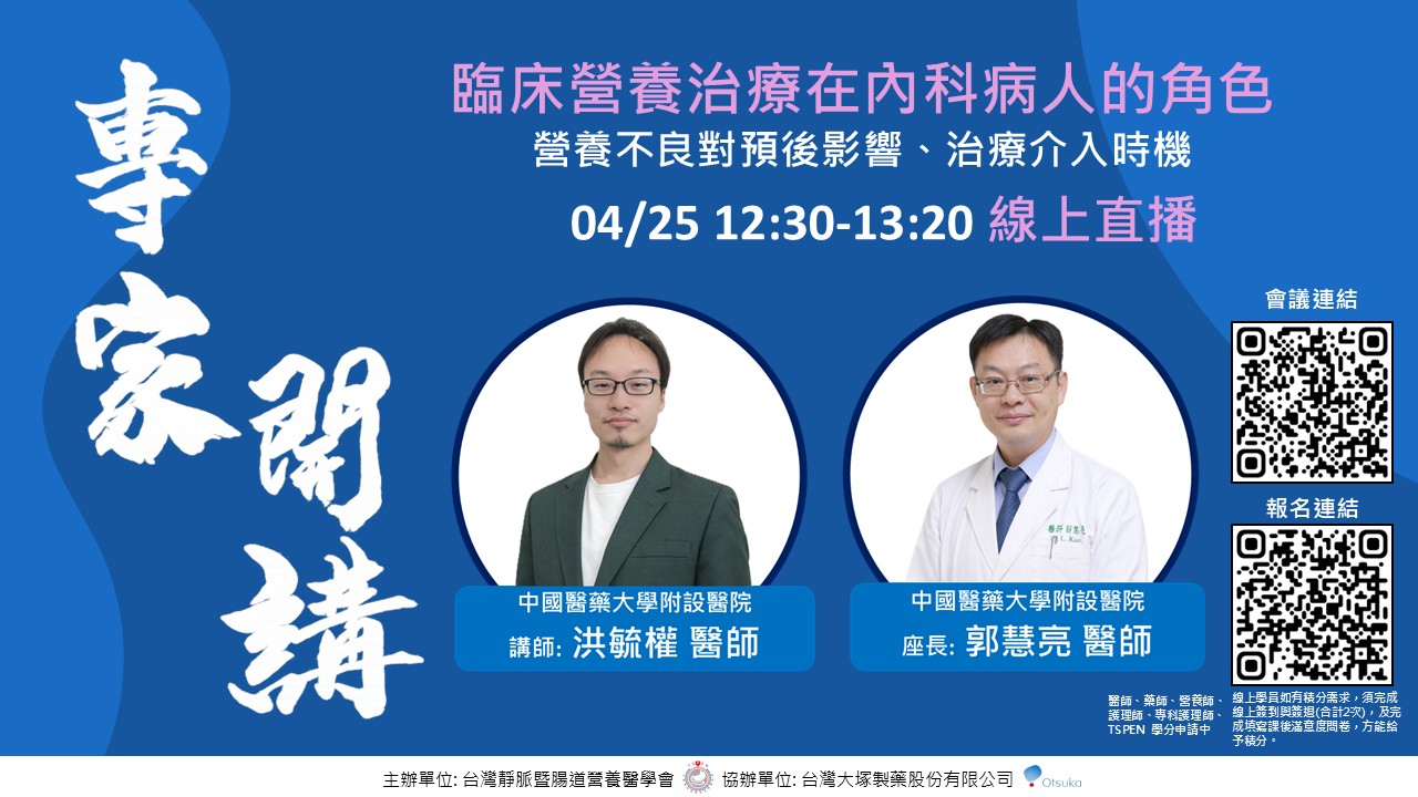 | 主辦單位 | 台灣靜脈暨腸道營養醫學會 |