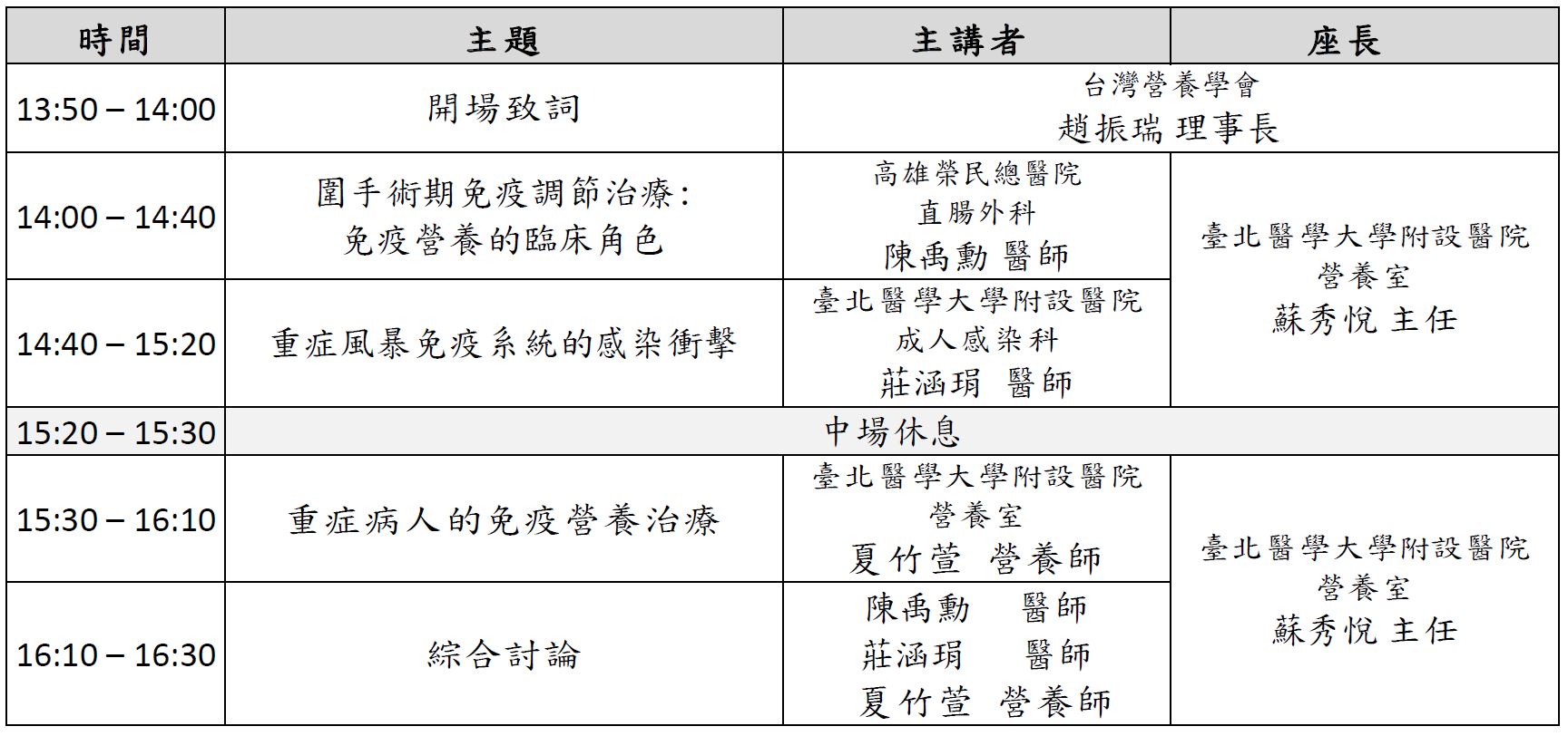 | 主辦單位 | 台灣營養學會 |